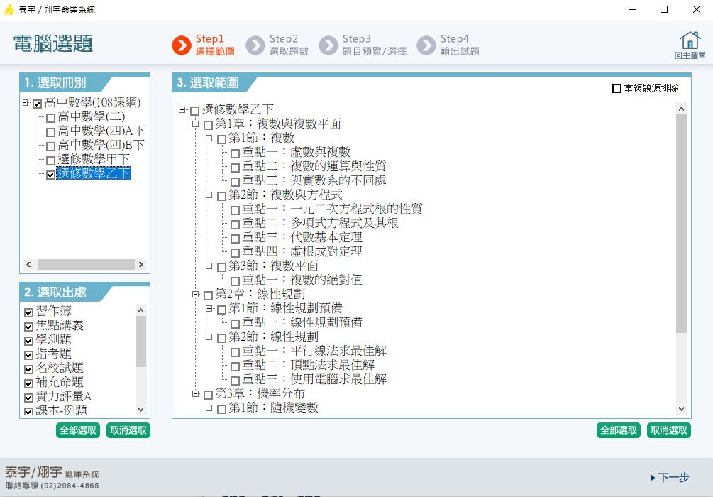 111學年下學期 高中命題光碟 泰宇版 數學科(二、四A、四B、選修甲下、選修乙下)(108課綱) 題庫光碟