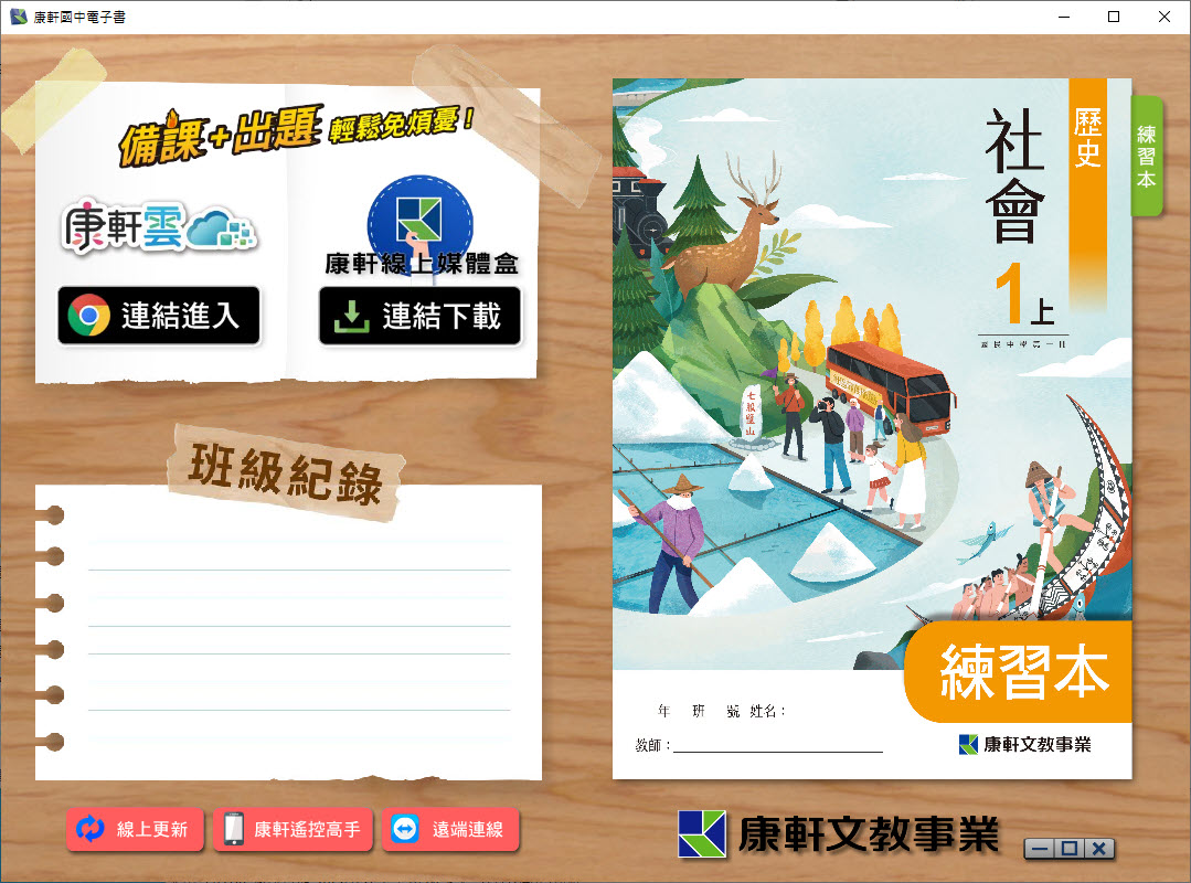 版 歷史 練習本電子書 1年級(含課本、習作含解答、教學資源)教學光碟