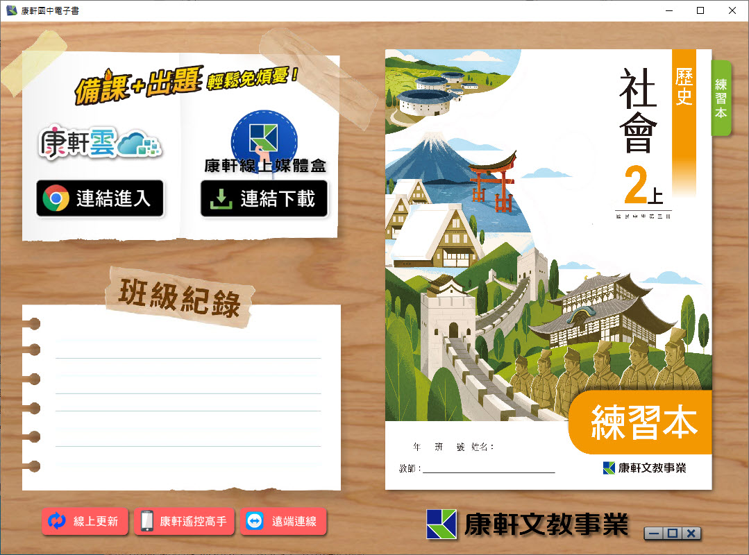 112學年上學期 國中 康軒版 歷史 練習本電子書 2年級(含課本、習作含解答、教學資源)教學光碟