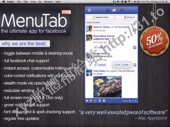 MenuTab Pro for Facebook v5.2 MacOSX 英文正式版(Facebook 快速訪問軟體)