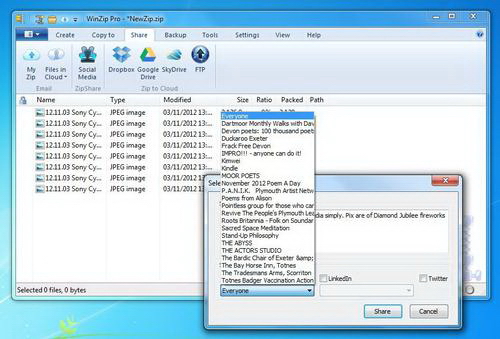 WinZip 11.0無論是標準版還是專業版的屬性比過去任何版本都更加通用萬能。現在你能夠: