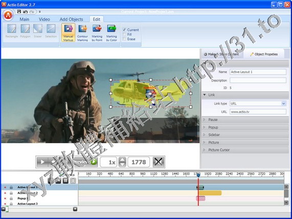 Actio Editor是一款可以製作互動(可點擊)視頻的軟體。可以在視頻中添加任意對像,通過點