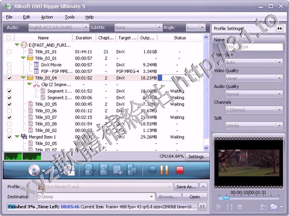 • Xilisoft DVD Ripper Ultimate v5.0.45.1024 繁體中文正式版(功能全面的DVD轉換軟體)